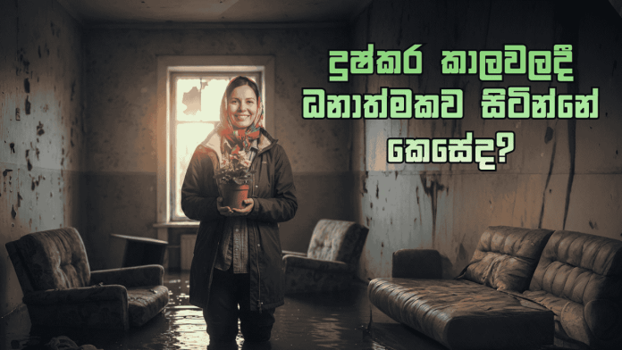 ජීවිතය සෑම විටම සාමකාමී , සුව පහසු සහ මෘදු එකක් වන්නේ නැහැ. සෑම දෙයක්ම බර, අනපේක්ෂිත සහ අධික ලෙස දැනෙන අවස්ථා බොහෝමයක් තියෙනවා. පෞද්ගලික අරගල, චිත්තවේගීය වේදනාව, මූල්ය පීඩනය හෝ අනපේක්ෂිත සිදුවීම් සහ දුෂ්කර කාලයන් ශක්තිමත්ම මනසකට පවා අභියෝග කළ හැකිය.එවැනි කාල වලදී පවා ධනාත්මකව සිටීම වැදගත්. එහෙත්, ධනාත්මක බව යනු වේදනාව නොසලකා හැරීම නොවේ. එය තත්වය දුෂ්කර වූ විට පවා ශක්තිය, පැහැදිලිකම සහ බලාපොරොත්තුව තෝරා ගැනීම ලෙස හඳුන්වන්නට පුළුවන්. ජීවිතය දුෂ්කර යැයි හැඟෙන විට ධනාත්මකව සිටීමට හැකි ප්රායෝගික ක්රම කිහිපයක් ගැනයි මේ ලිපිය.