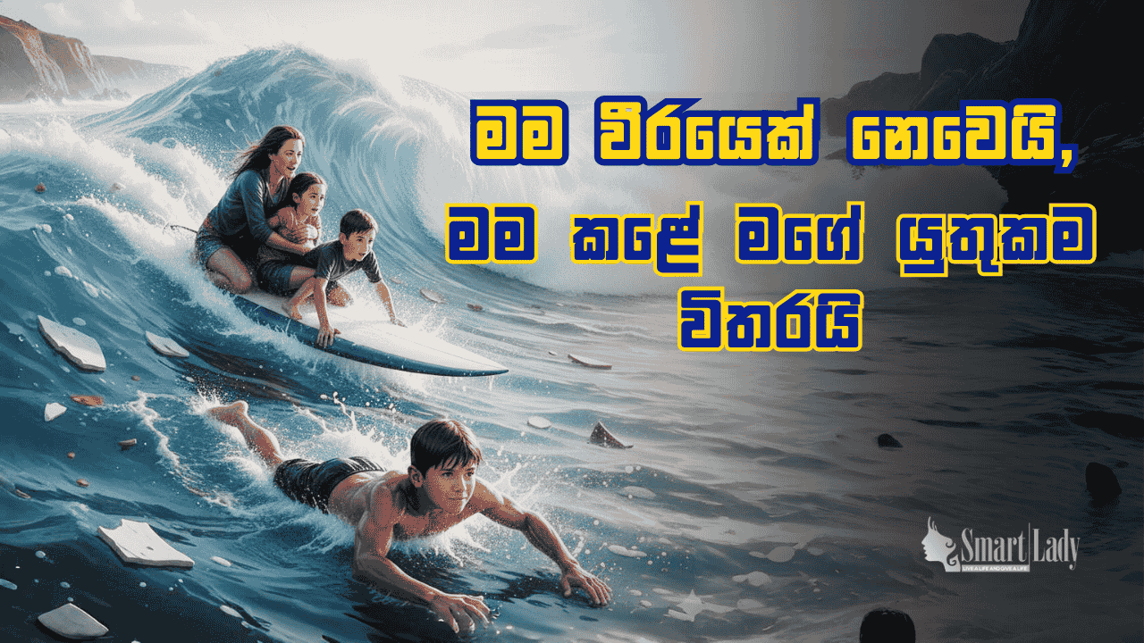 “අම්මේ මම කොහොම හරි උදව් අරන් එන්නම්” කියලා ඒ බියකරු දියඹට පැනපු මේ පුංචි වීරයා, මෝරුන් ඉන්න, දරුණු රළ ගෙඩි ගහන මුහුදේ පැය හතරක් තනිවම පීනුවේ තමන්ගේ පවුල වෙනුවෙන්. ඒ පීනපු හැම හුස්මකම තිබුණේ “මගේ පවුලෙ අයව මම බේරගන්නවා” කියන ඒ ආදරය විතරයි.